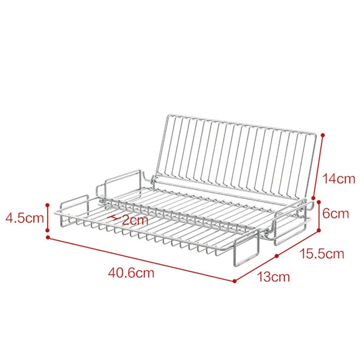 Celotna velikost je 40,6 cm/15,98 palca, višina glavnega dela je 6 cm/2,36 palca, višina navpičnega roba je 14 cm/5,51 palca, širina stranskega podaljška je 15,5 cm/6,1 palca, drenažna reža je 2 cm/0,78 palca. Ta oblika je primerna za večino gospodinjskih pomivalnih korit z eno režo/dvojno režo in zagotavlja hiter pretok vode, s čimer se prepreči kopičenje vode.