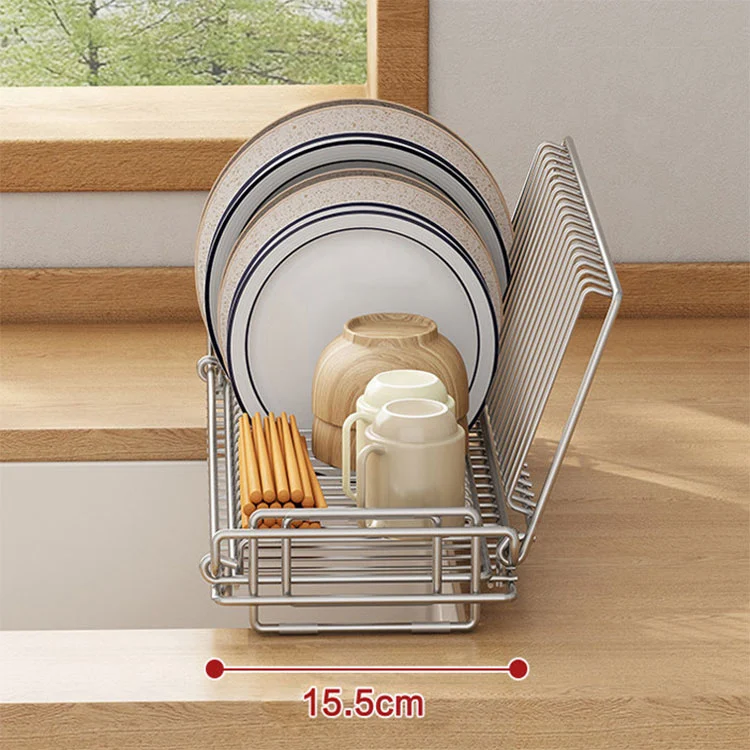 2. Polvložna oblika pomivalnega korita (Model B): Del okvirja je vgrajen v pomivalno korito, primerno za situacije z ozkim pomivalnim koritom. Lahko shranjuje namizni pribor in omogoča, da voda teče neposredno v umivalnik, tako da pult ostane suh.
